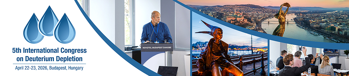 The 5th International Congress on Deuterium Depletion will be held on 22-23 April 2025 in Budapest, Hungary. The conference programme places the primary focus on advances in the research and clinical application of deuterium depletion, its present and future role in anticancer research and oncotherapy, diabetes research, mental diseases, physical performance, health preservation, and anti-aging. The conference's goal is to provide a scientific forum for all stakeholders in this field of science, enabling the interactive exchange of state-of-the-art knowledge. At the 5th International Congress on Deuterium Depletion, leading scientists presented and discussed the latest advances in research and various applications of deuterium depletion. In addition to its scientific content, the 5th International Congress on Deuterium Depletion will also serve as a networking event, providing a unique opportunity to meet all stakeholders involved in deuterium depletion. The organizers will also facilitate cross-border co-operations between scientists and institutions during the conference.